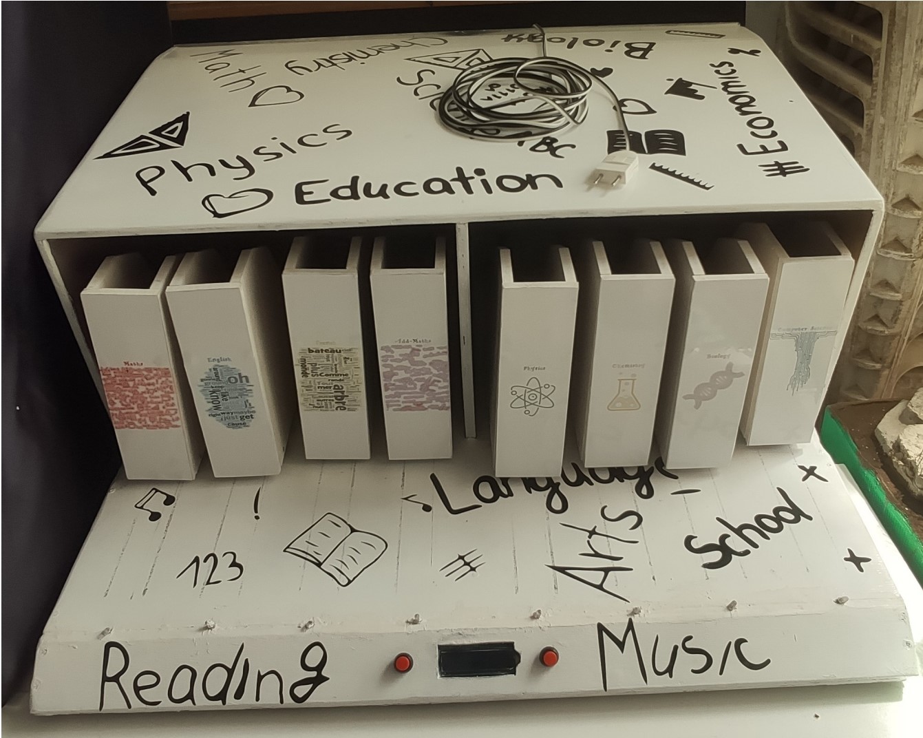Students at secondary level often face two problems, one of them is that they forget to bring their copy books or books to school and the other is they tend to have a messy table which again leads to not finding their belongings on their table. The eSPR allows the student to have an organized table and also it tells them which subject they have the particular day so that they save up time in matching their timetables