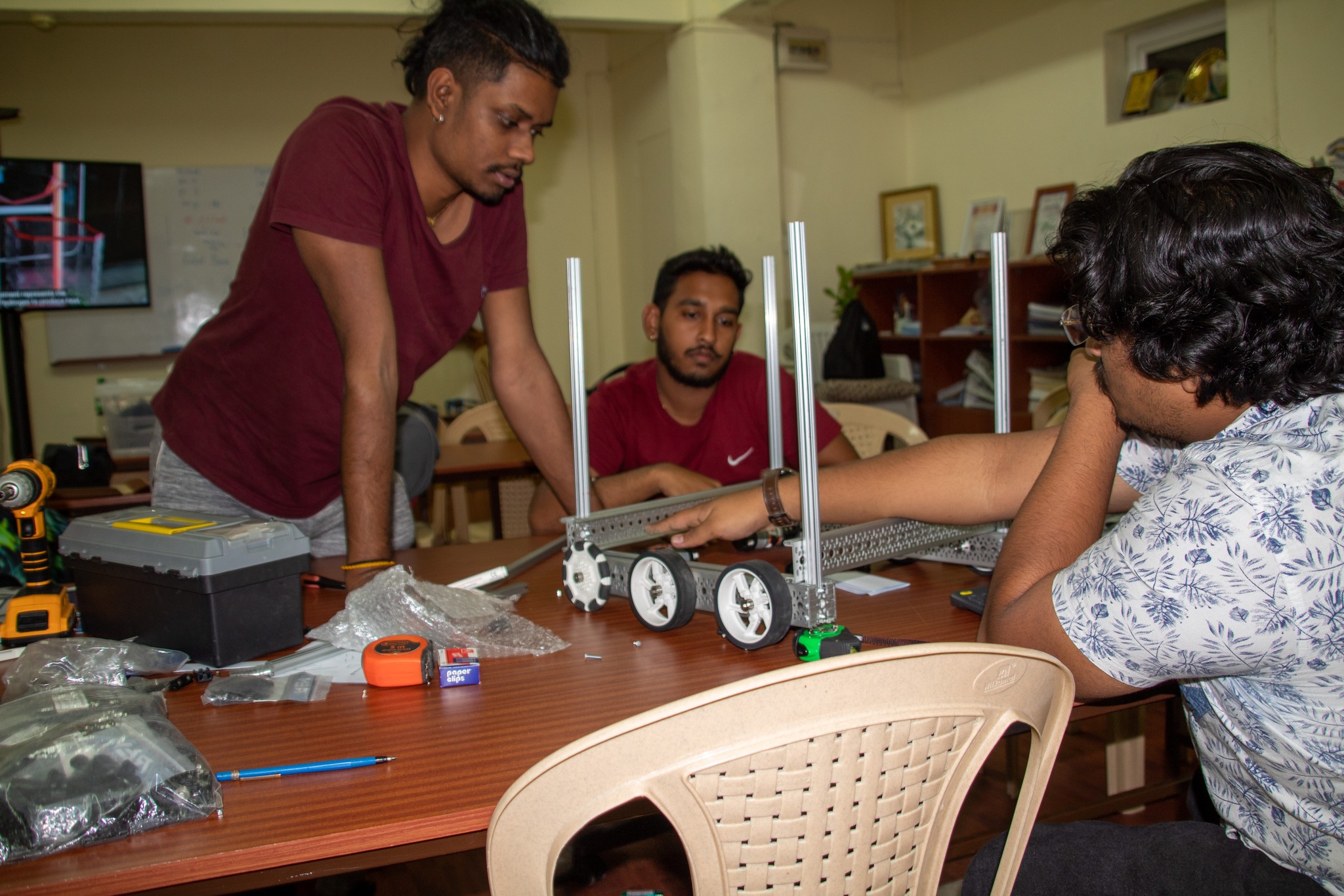 The product is made to detect small caps which are often thrown and neglected while cleaning which still causes lots of pollution. The robot collects all the caps using an automated arm and then separates the plastic and metal caps using electromagnet that will be sent for recycling or reusing.
